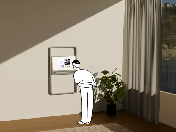 A tactile slider lets users complete tasks by physically pressing it – a clear, satisfying action that marks the task as done and reinforces engagement. Animated visuals provide intuitive feedback, making the experience both understandable and enjoyable. Staff can configure and manage all task plans easily via a connected app.