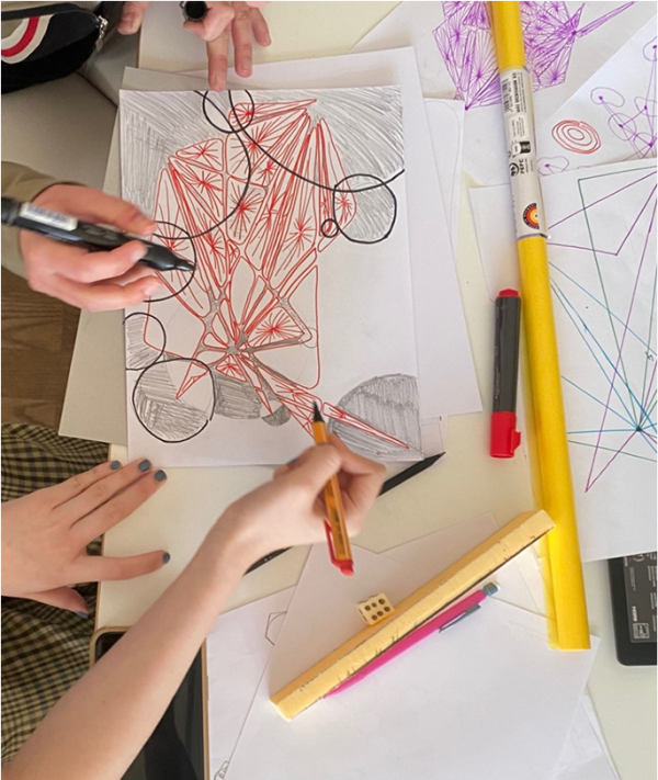 Im Rahmen unseres ersten Projekts setzten wir uns intensiv mit dem sogenannten “Algorithmic Thinking” auseinander. Ziel war es, ein grundlegendes Verständnis dafür zu entwickeln, wie algorithmische Prozesse zur Erzeugung von visuellen Strukturen und geometrischen Formen beitragen können. Dazu probierten wir verschiedene vorgegebene Zeichenalgorithmen manuell aus und analysierten Schritt für Schritt, wie sich daraus komplexe Muster ableiten lassen.