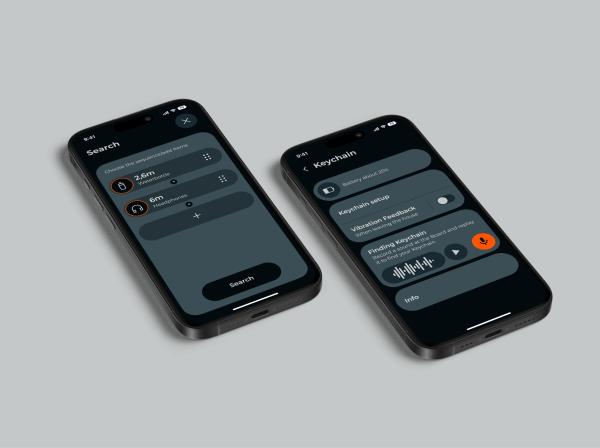 Die App ermöglicht eine gezielte Suche nach Essentials per Tippen im Home-Menü. Diese werden nach Entfernung sortiert und lassen sich individuell umsortieren. Essentials vom Board erscheinen automatisch in der App, jeweils mit einem Tag verbunden, der eine präzise Ortung der Objekte ermöglicht.
