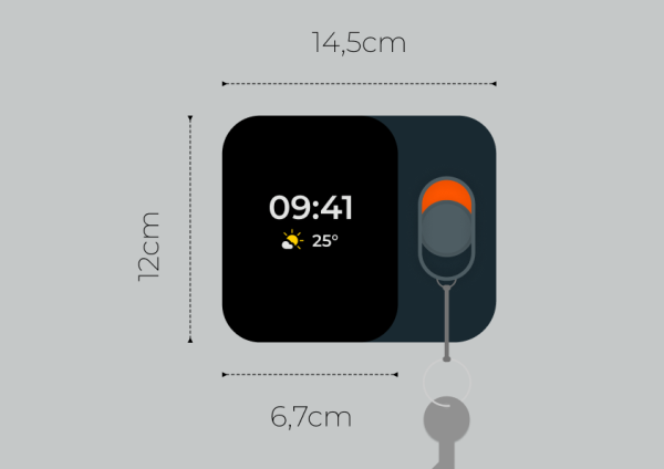 Das Board stellt die zentrale Schnittstelle des Systems dar. Es ist unmittelbar an der Wohnungstür positioniert und führt die Nutzer mittels eines kompakten Displays sowie gezielter Signale durch eine individuell anpassbare Checkliste von bis zu 6 Essentials.