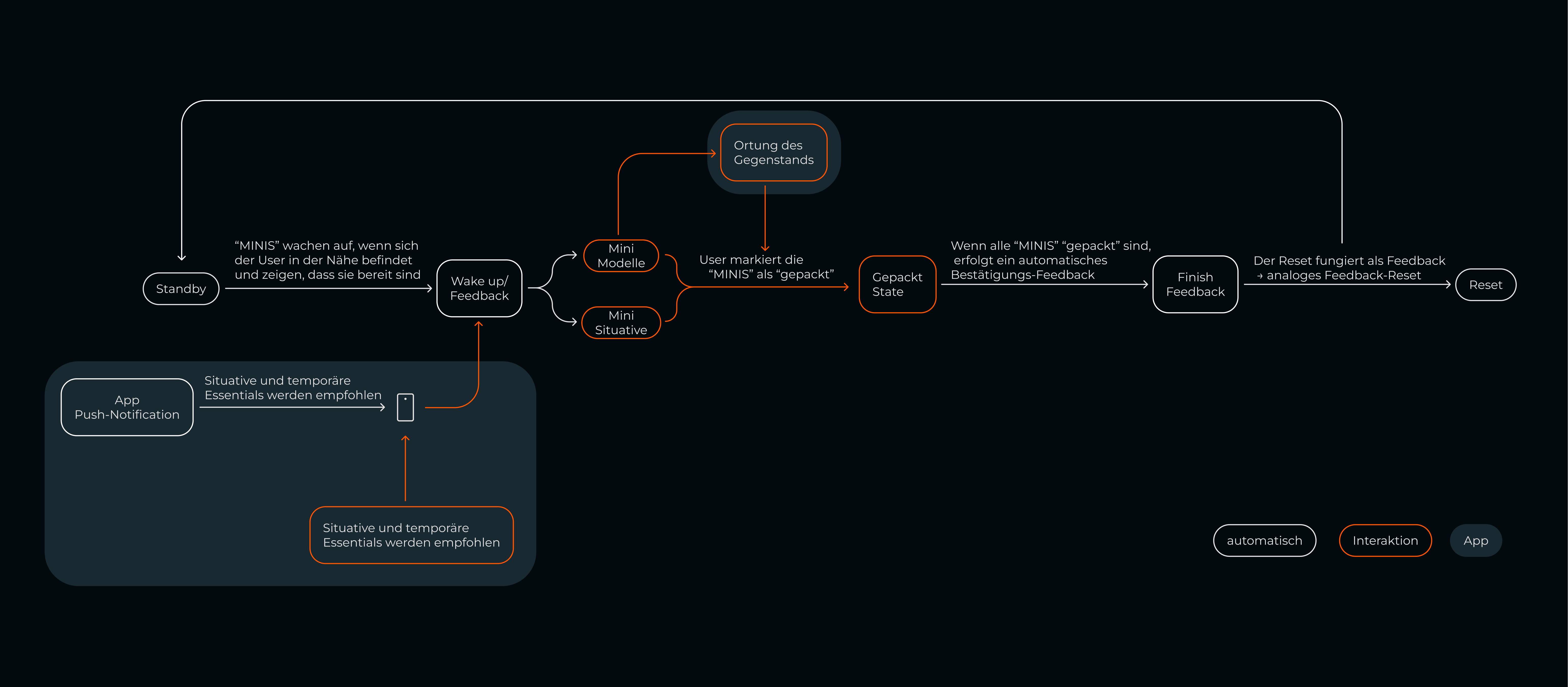 „Vergessen verhindern“ ist ein interaktives, physisches System für Menschen, die im Alltag immer wieder wichtige Gegenstände vergessen, sei es durch Stress, Reizüberflutung oder ADHS-bedingte Gedächtnislücken. Der Moment an der Tür, wenn man sich fragt „Hab ich alles?“ oder „Wo liegt das?“, steht im Zentrum.