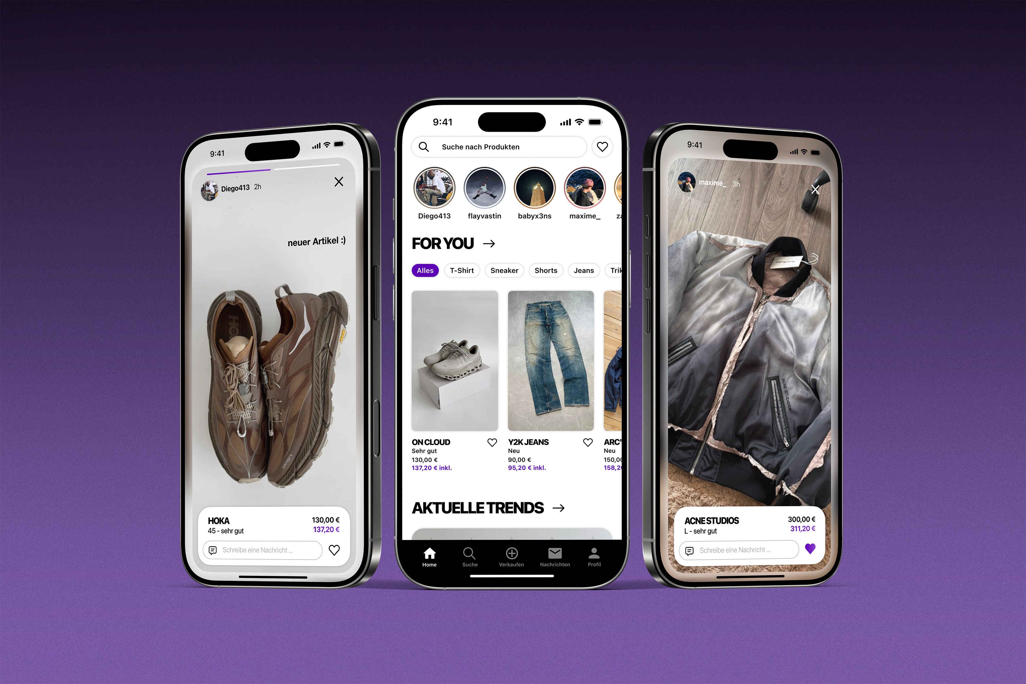 Die Storys auf unserer Landingpage bieten Verkäuferinnen und Verkäufern die Möglichkeit, ihre neuen Inserate auf kreative Weise für 24 Stunden zu präsentieren. Nutzerinnen und Nutzer können diese Storys entdecken, indem sie den jeweiligen Profilen folgen. In den Storys werden nicht nur Produktbilder, sondern auch wichtige Informationen wie Marke, Größe, Zustand und Preis direkt eingeblendet. So entsteht eine inspirierende, authentische Vorschau auf neue Artikel, die zum Stöbern und direkten Kontakt mit den Verkäuferinnen und Verkäufern einlädt.