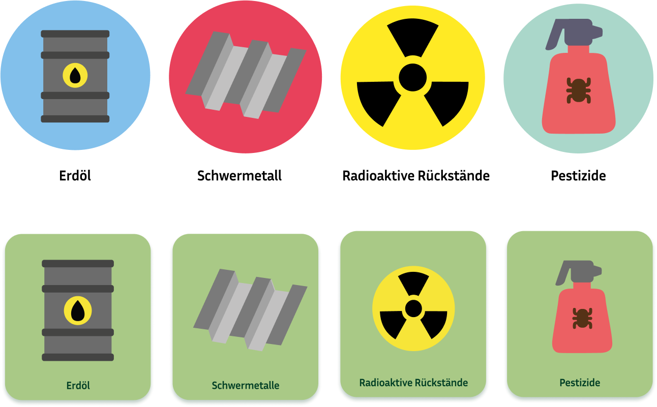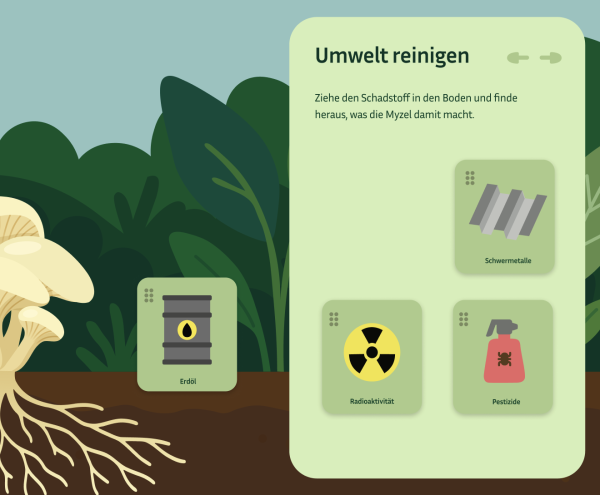 Auch für die Darstellung der Schadstoffe, die später per Drag & Drop in den Boden gezogen werden sollten, wendeten wir dasselbe gestalterische Prinzip an.
