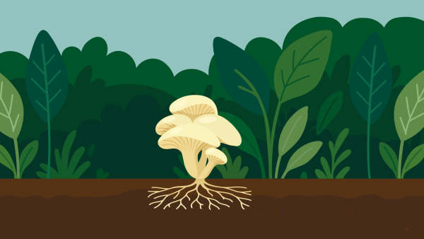 Nachdem wir den Illustrationsstil für unseren Austernpilz definiert hatten, setzten wir den Gestaltungsprozess mit dem Startbildschirm fort. Dafür erstellten wir zunächst digitale Zeichnungen, die anschließend in Adobe Illustrator ausgearbeitet wurden.