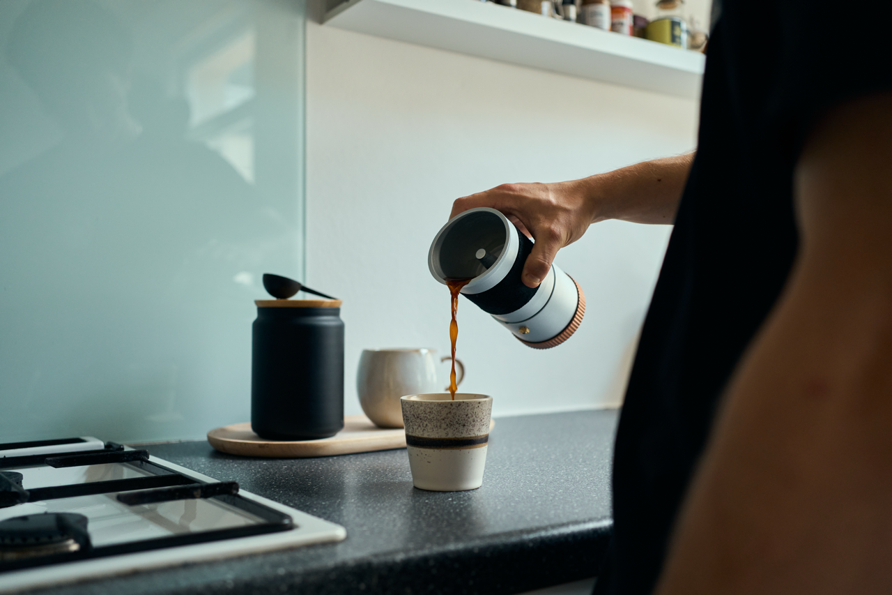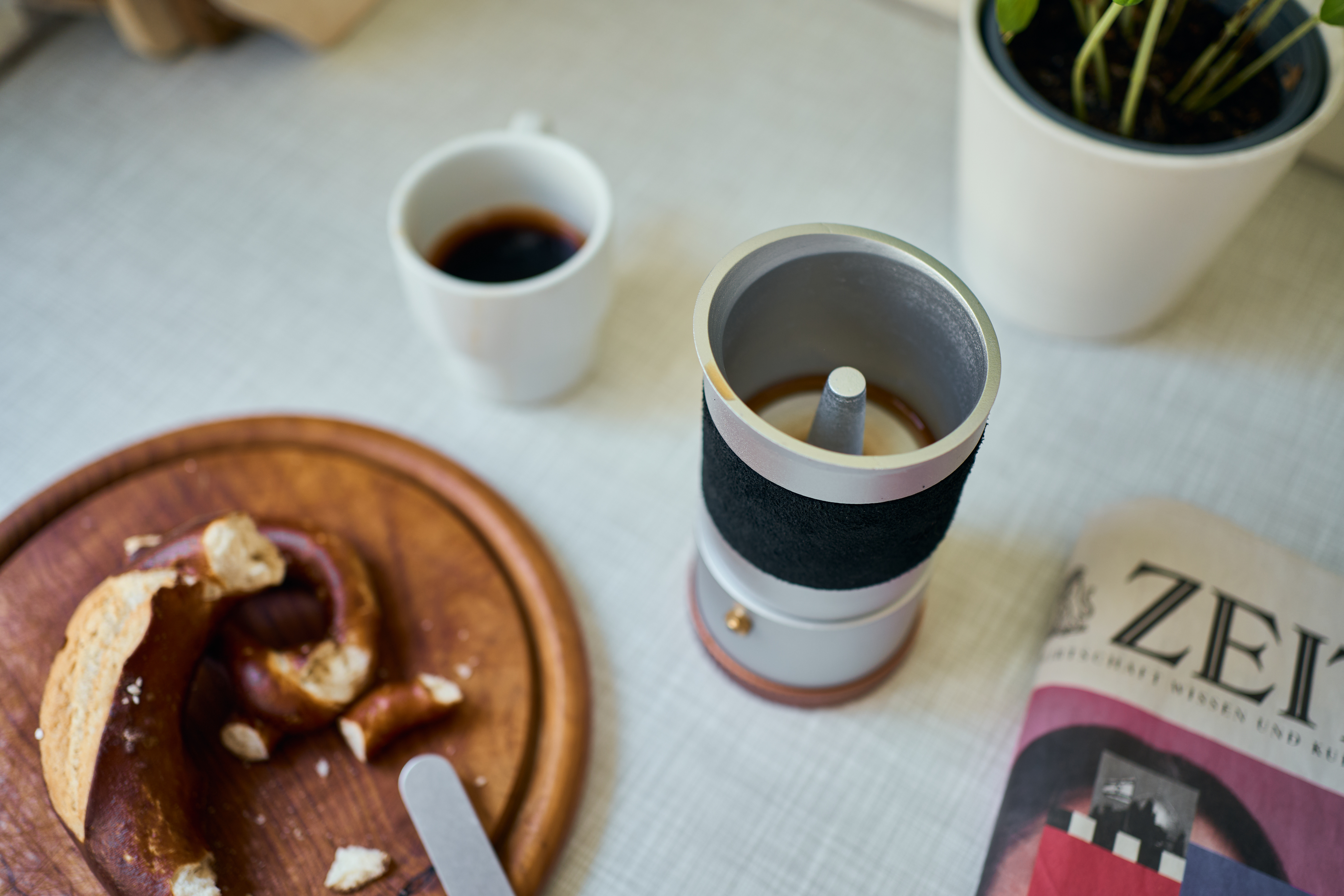 Auch das deckellose Design hat seinen Grund: Der aufsteigende Kaffee wird für die nutzende Person sichtbar – der Brühprozess wird direkt erlebbar.