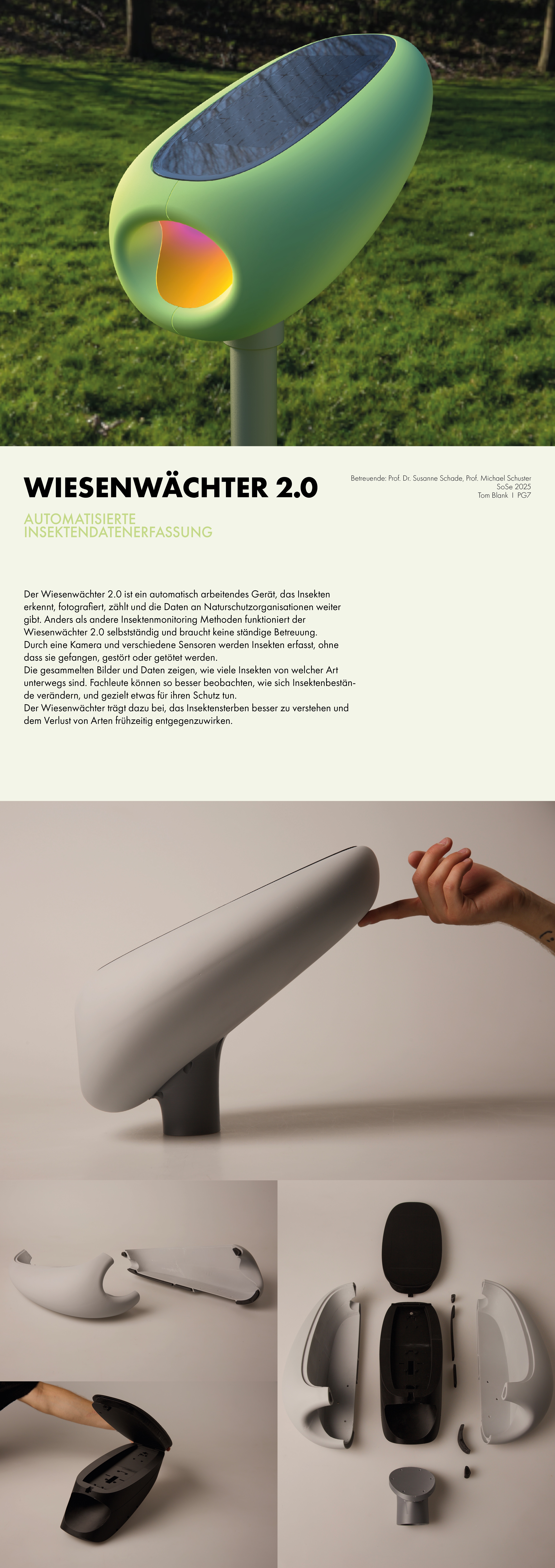 Inhalt des Kurses Bachelorarbeiten Produktgestaltung In der Bachelor-Arbeit im 7. Semester bearbeiten die Studierenden anhand eines frei wählbaren Themas ein Gestaltungsprojekt, in dem sie ihre erlernten Kenntnisse in Recherche, Konzept und Entwurf praktisch anwenden. Bachelor of Arts Produktgestaltung Semesterjahr 7. Semester Betreuung Prof. Michael Schuster, Prof. Dr. Susanne Schade Wiesenwächter 2.0 - automatisierte Insektendatenerfassung 0 Studierende Tom Blank Betreuung Prof. Michael Schuster, Prof. Dr. Susanne Schade Tags Datenerfassung Datenbank Produktgestaltung Prototyping Raspberry Pi Rhino Nachhaltigkeit Monitoring Modellbau Weitere Projekte aus dem Bachelor NiKU system Donna Auerswald, Jule Schwarz LUMINARcare Noel Belgram Kindermöbel im Wandel - Sensu Celine Effinger, Kathrin Link Vineguard One: modulares Fahrzeug für den Weinbau Paul Schubert Baustelle Kreislaufwirtschaft Leonie Eisele Cheatah - Bionisch inspirierte Gestaltung eines Fußballschuhs Axel Braun, Julius Helbing Wert im Werk Pit Isele M-TEX _ Zukunftsfähige Maschinenverkleidung Samuel Joas halo : tPBM beim Einsatz von Depression & Angst Titus Kollmann Abenteuer Wald Nina Baur Balance zwischen Trauer und Erholung - Gestaltung eines zeitgemäßen Friedhofsmobiliars Roman Samarski Spielpunkt Erik Magura Castle Rush Tilman Ziegler Entspannung durch Anspannung Frederik Gauss Cavalea - Schutz für Pferdebeine Luzie Schierle