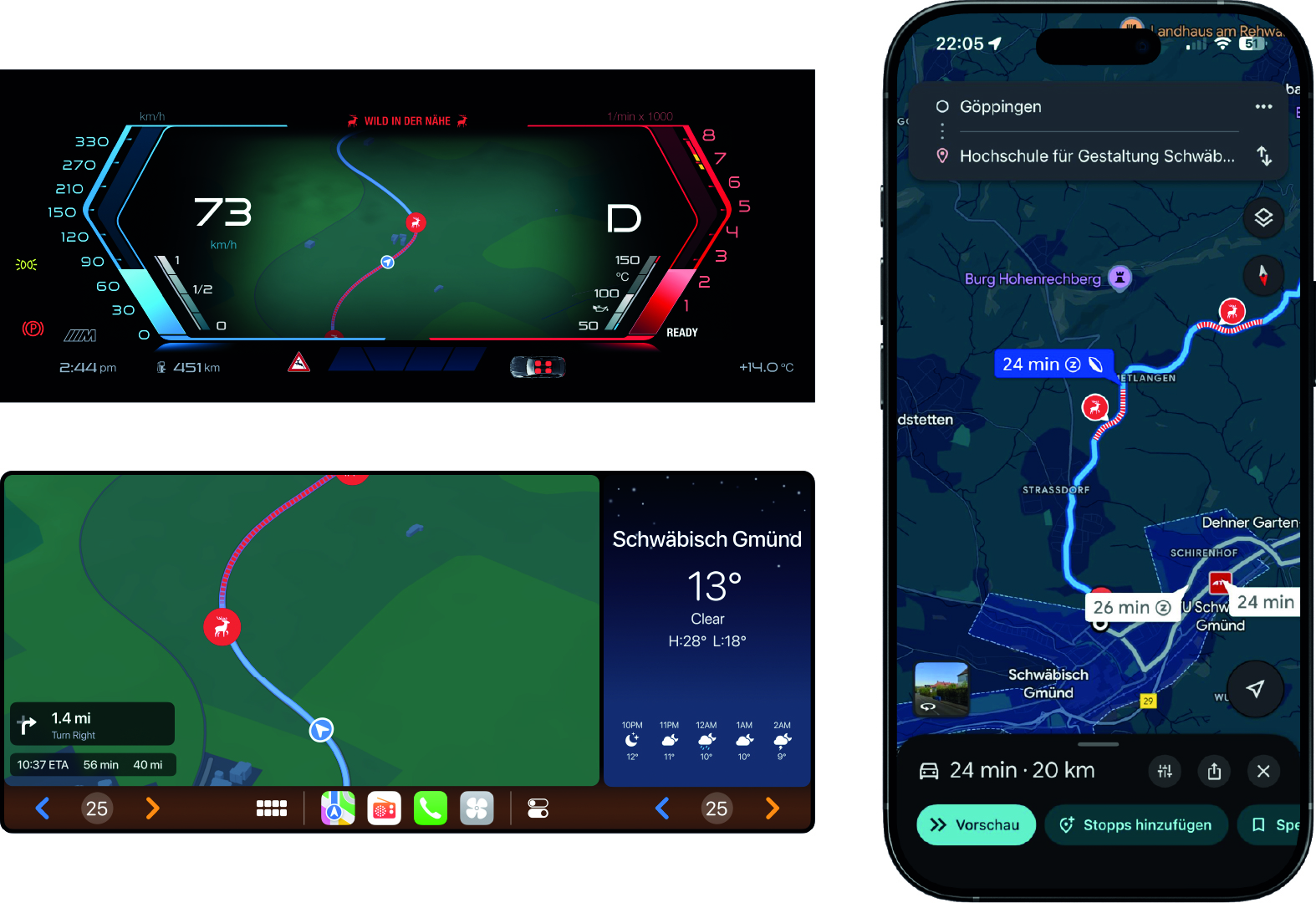 Die Information über die Wildsichtung wird auch digital weitergegeben. Wildar ist mit Navigationssystemen vernetzbar, zum Beispiel mit: