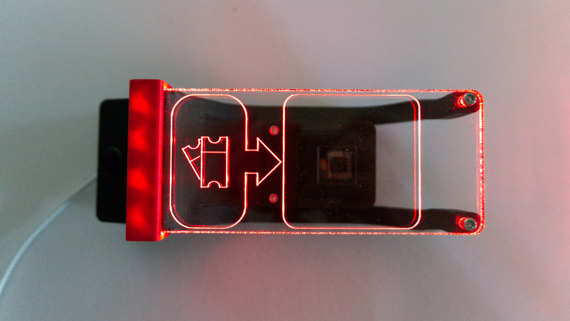 Das Nutzerfeedback funktioniert in unserem Fall mithilfe des LED Streifens der hinter der Scannfläche platziert ist und so dem Nutzer ein direktes Feedback zum Status seines Tickets vermittelt.