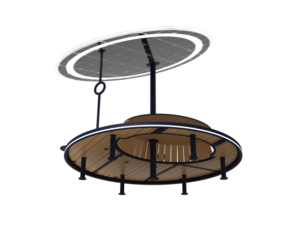 The solar panel produces the electricity you need in an environmental friendly way. The earth circles the sun, therefore you can rotate the shade and can get optimal shade. If you prefer to have direct sun, you can turn the shade away. You can choose if you want to have a classical seating position for your work or if you want to be in a lounge position. Also then you have a table, that you can rotate to bring it to your preferred distance.