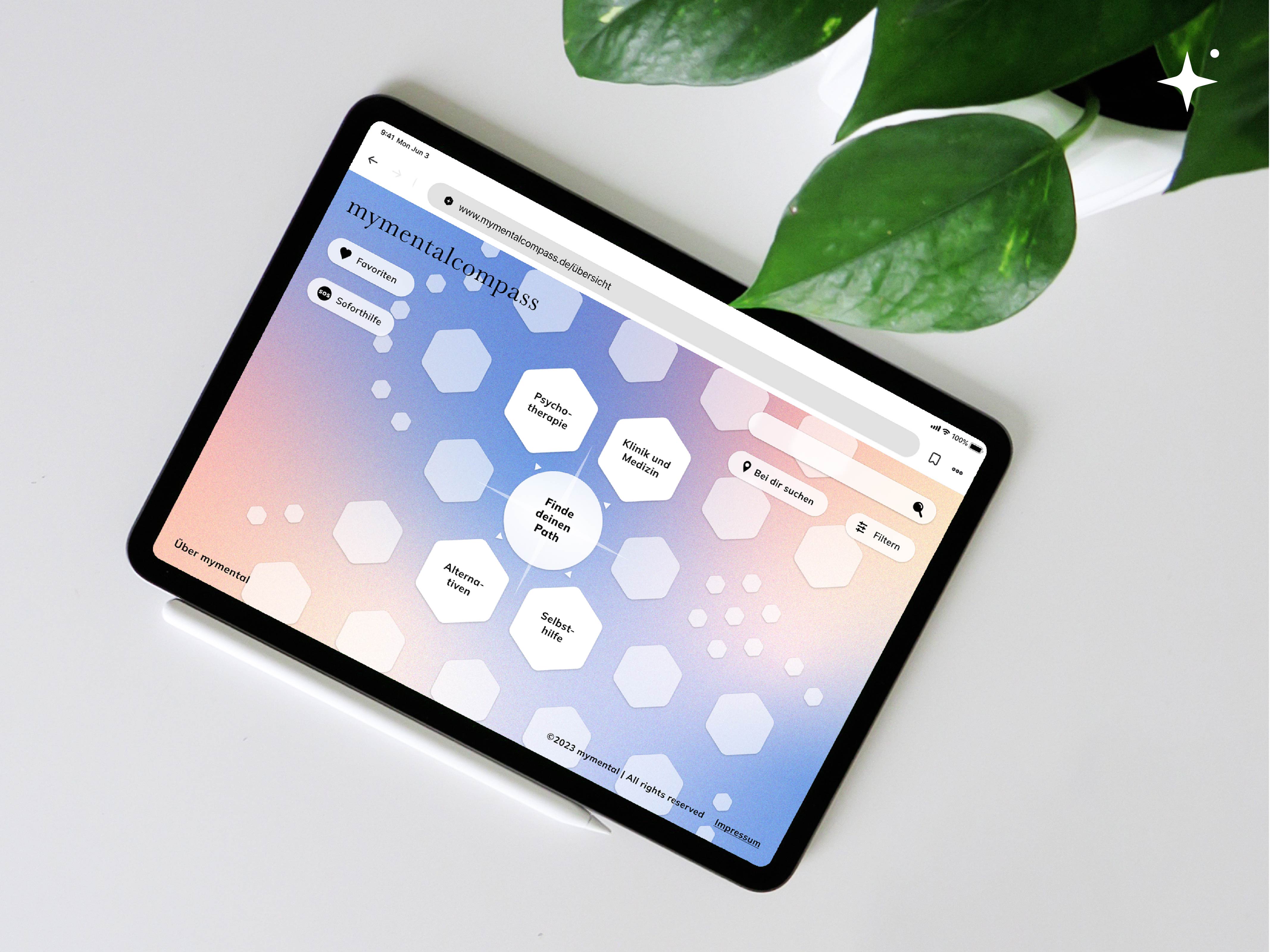 mymental ist eine fiktive Plattform, die Wissen über psychologische Hilfsangebote zur Verfügung stellt und versucht, die geeigneten Behandlungsmethoden für Nutzer:innen zu finden. Die Plattform besteht aus vier Teilen: dem mymentalpodcast, -compass, -path und -map. Jedes Element erfüllt unterschiedliche Funktionen, um Nutzer:innen Orientierung zu geben und wertvolle Informationen zur Verfügung zu stellen.