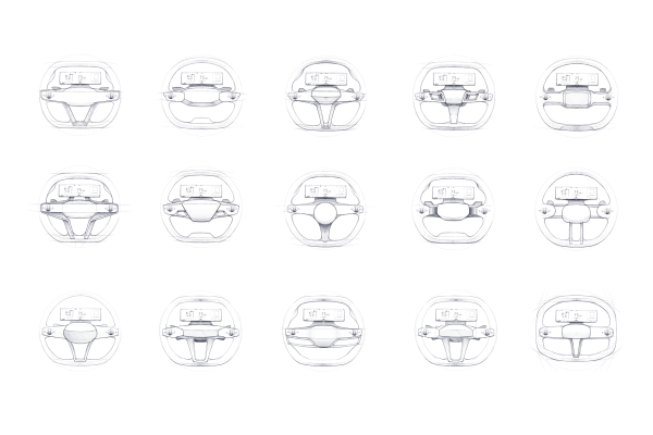 Instead of putting every function to the central touch screen, pad-e brings everything you need as close to you as possible - to the steering wheel. It combines a clean and modern design approach of the steering wheel and user interface with a much improved overall interaction experience. The combination of the paddles behind the steering wheel, a scroll wheel that clicks and tilts, and an intuitive and consistent user interface provide easy and quick interactions with the car. Due to this, we were able to improve user experience but also driver safety. Every single second while driving a car equals hundreds of meters. So by spending less time interacting with a car you can pay more attention to the road.