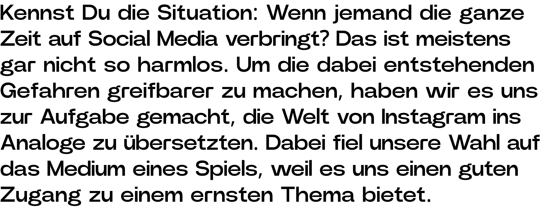 Da wir im Rahmen des Kurses viele Freiheiten hatten, hat sich uns ein Raum geboten, in dem wir uns gestalterisch ausprobieren konnten. Dadurch hatten wir die Möglichkeit, ein Spiel zu entwickeln und so etwas Neues auszuprobieren.