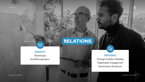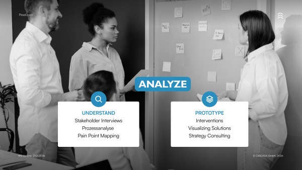 Theorie ist gut, ein Track-Record ist besser. Am Ende des Kurses hast du ein reales, abgeschlossenes Transformationsprojekt für dein Portfolio, das deine neue strategische Kompetenz beweist. Zudem wirst du Teil des CASCADA-Alumni-Netzwerks. Das bedeutet direkten Zugang zu Mentoren und Unternehmen, die genau diese neuen Skills suchen.