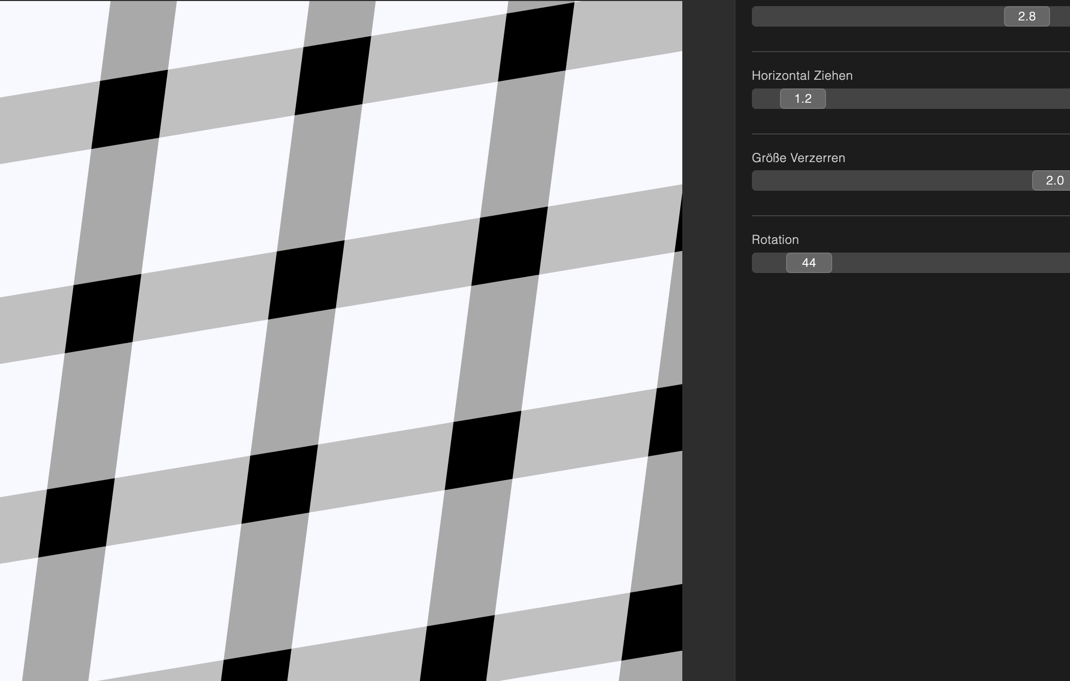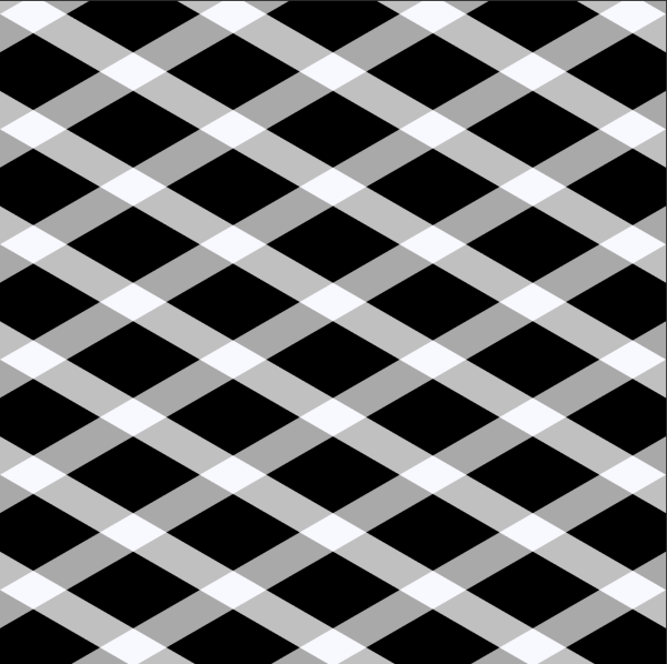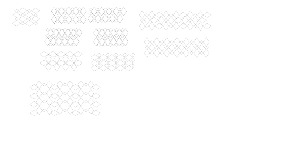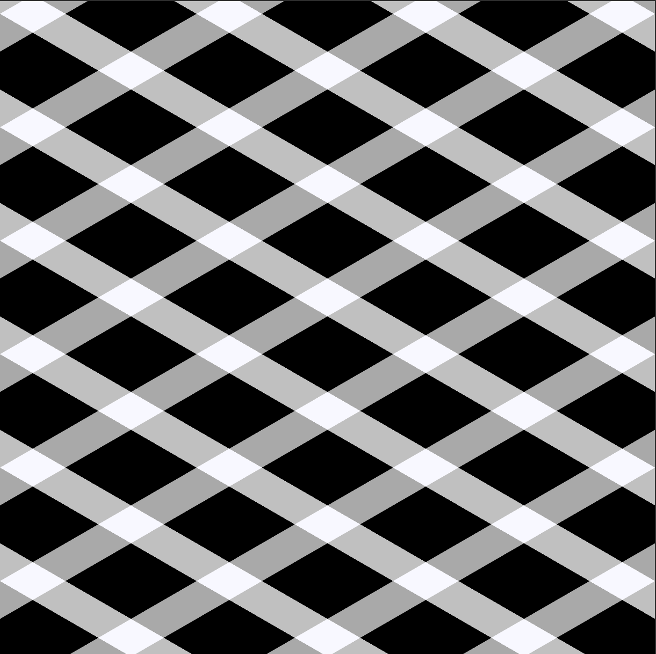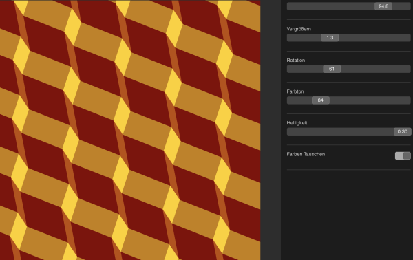 Es besteht lediglich aus dem Rautenmuster in Schwarz und Weiß. Man kann das Muster Strecken und Ziehen, Rotieren und die einzelnen Polygone verschieben. Dadurch kann man die großen Schwarzen Rauten von der Größe halbieren und zu den kleinen machen. Die ganze Parkettierung verschiebt sich einmal dadurch nach Rechts und die kleinen weißen Polygone werden zu den Großen,