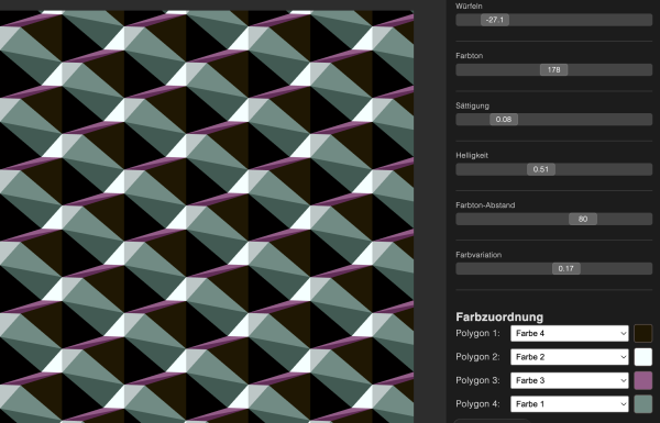 Allerdings lassen sich die Farben besser und detaillierter bestimmen, mit Helligkeit, Sättigung, einem größeren Farbunterschied für die einzelnen Rauten und Kontrast. Auch kann man den einzelnen Polygonen eine oder auch die gleiche Farbe zu ordnen. Zudem ist bei Prism auch besonders dass sich die einzelnen Rauten aus 2 Dreiecken bestehen, welche mit einem Slider dunkler gestellt werden können und somit die Polygone nochmals unterteilen. Dadurch scheinen sie nochmals 3-Dimensionaler.