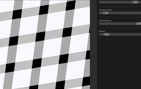 Auch kann man das Netz so verzerren das sie wie Würfel aussehen. Die Polygone kann man in beide Richtungen verzerren, wodurch sich die Würfel zu bewegen scheinen. Mit einem Schalter kann man die jeweils hellste und dunkelste Farbe der Polygone Tauschen und somit den Lichteinfall bestimmen.