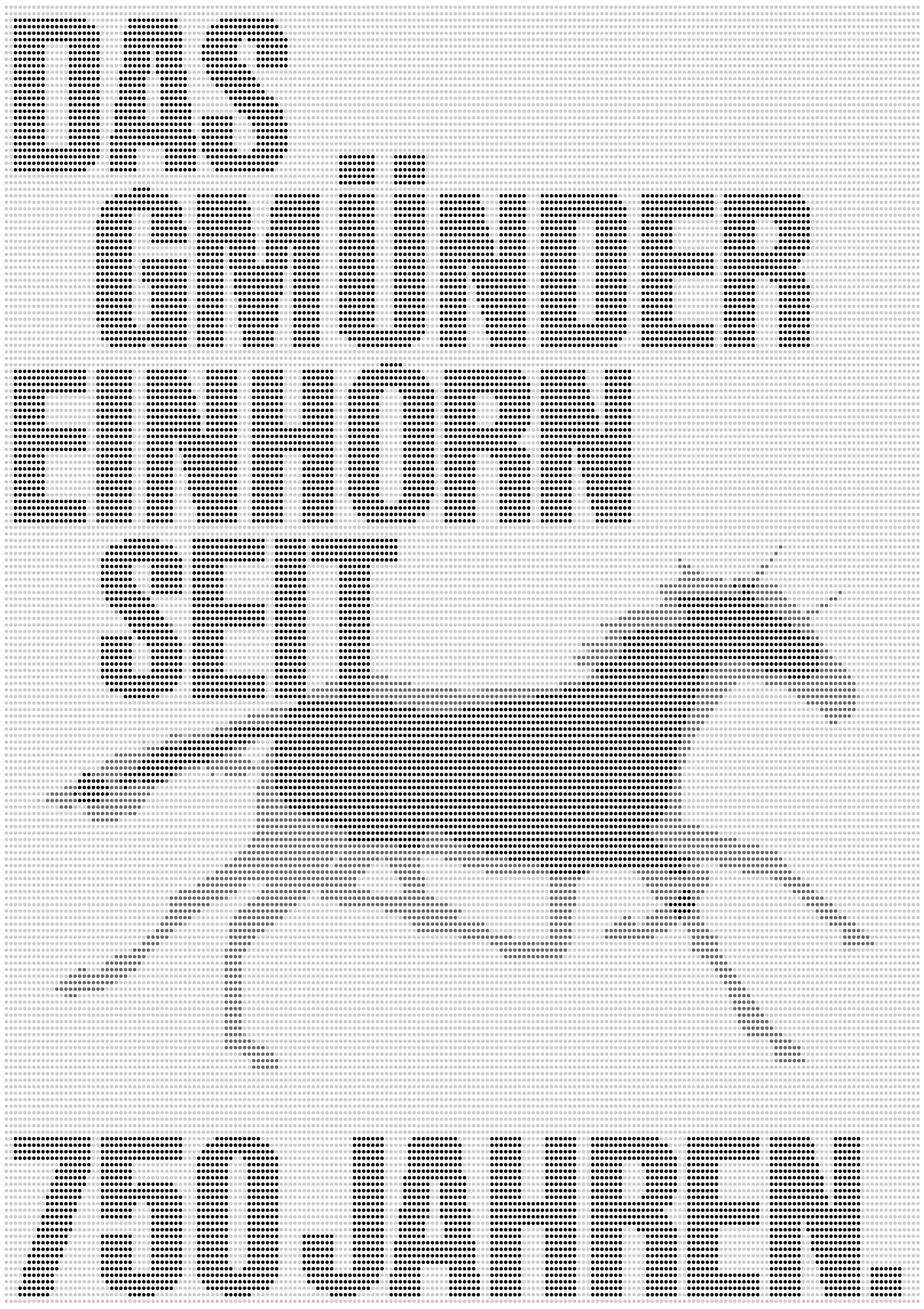 Gekoppelt an eine Einheit des Kurses Programmiersprachen entstand für dieses Jubiläumsplakat ein in p5.js generiertes Raster aus grau abgestuften Ellipsen, welche eine neue Bildebene erzeugen. Neben der plakativen Typo liegt der Fokus auf der dynamischen Überlagerung zweier Einhörner während einer Galoppierbewegung.