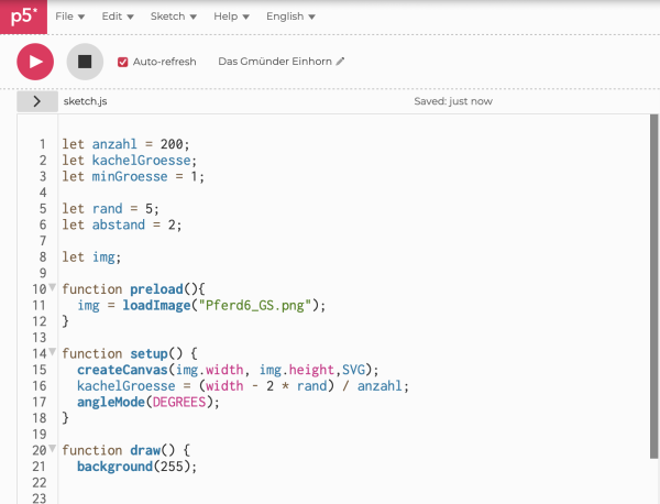 Gekoppelt an eine Einheit des Kurses Programmiersprachen entstand für dieses Jubiläumsplakat ein in p5.js generiertes Raster aus grau abgestuften Ellipsen, welche eine neue Bildebene erzeugen. Neben der plakativen Typo liegt der Fokus auf der dynamischen Überlagerung zweier Einhörner während einer Galoppierbewegung.