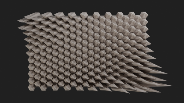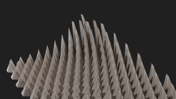 Im Kurs “Dreidimensionales Gestalten” sollten wir mithilfe der 3D-Grafiksofware “Blender” eine wiederkehrende Formstruktur aufbauen und daran die Wirkung von Modulationen, Licht und Schatten erproben.