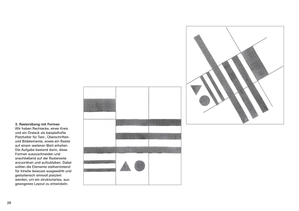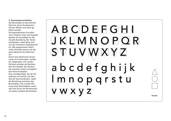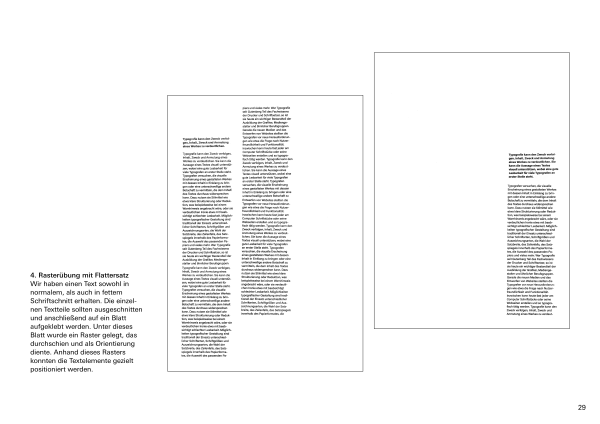 Das Fach Grundlagen der Typografie führt in die mikro- und makroästhetischen Grundlagen der Arbeit mit Schrift ein. Ausgehend vom einzelnen Buchstaben, der kleinsten typografischen Einheit, bis hin zu komplexeren Layoutentwürfen wird der Umgang mit Schrift erarbeitet. In unterschiedlichen Übungen werden formale Fragestellungen zu Form, Gegenform, Proportion, Kontrast oder Rhythmus im Bezug auf die Anwendung und Wirkung unterschiedlicher Schriften von den Studenten und Studentinnen untersucht und besprochen. Im Rahmen eines Kurzprojekts erkunden sie die Möglichkeiten der Typografie als Werkzeug zur Gliederung, Gewichtung und Strukturierung von Informationen.