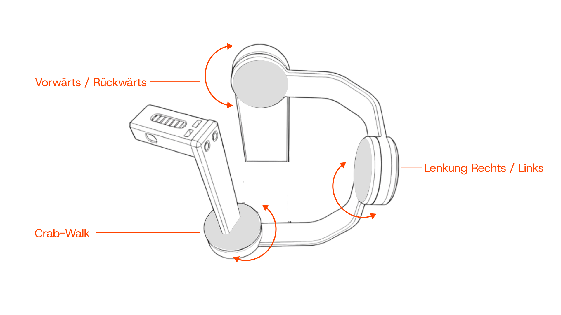 Die Aufgabe bestand darin, einen Controller zu entwerfen, der die vielfältigen Bewegungen eines Roboters wie Fahren, Lenken, diagonales Verfahren (Crab-Walk) und Greifarmsteuerung in einem einzigen Interface bündelt.