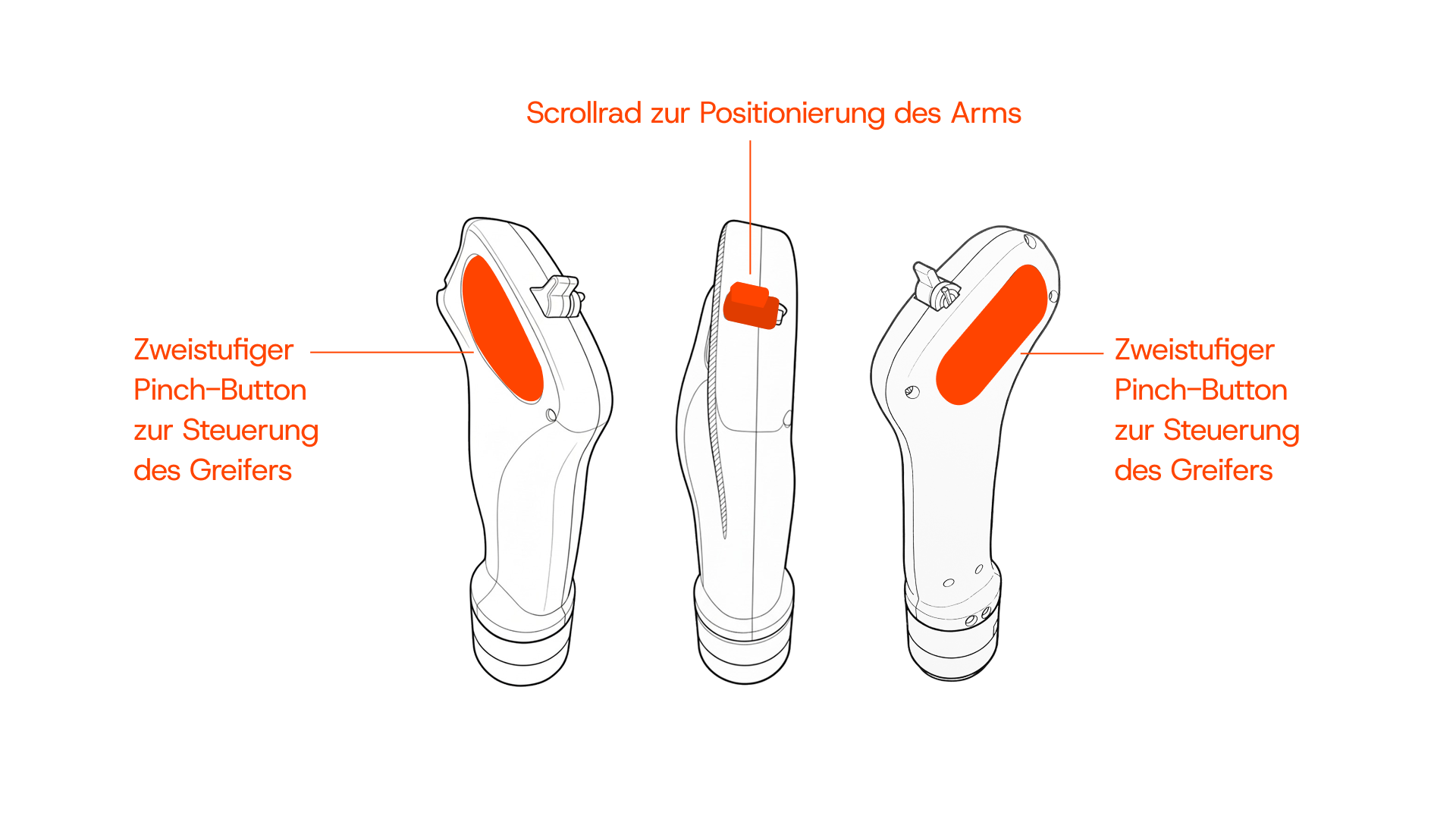 Die einhändige Bedienung ermöglicht es, parallel weitere Aufgaben auszuführen. Durch die kardanische Aufhängung fühlt sich die Steuerung unmittelbar und natürlich an. Zusätzlich erlaubt das Force Feedback eine sichere und kontrollierte Interaktion. Einzelne Achsen können bei Bedarf gesperrt werden, um besonders ruhige und präzise Bewegungen zu ermöglichen.
