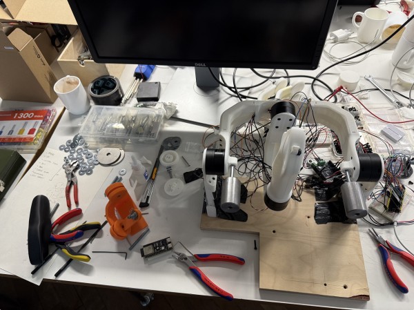 Unser Entwicklungsweg war geprägt von Iterationen und stetiger Optimierung. Durch den Bau früher Prototypen gelang es uns, die räumliche Logik der kardanischen Aufhängung zu verstehen und das Achsen-Layout festzulegen. Ein zentraler Wendepunkt war die Erkenntnis, dass die Standardmotoren für die Last nicht ausreichten. Durch den Wechsel auf spezialisierte Gimbal-Motoren mussten wir die Konstruktion zwar grundlegend neu denken, konnten so aber die nötige Kraft für ein überzeugendes Force-Feedback sicherstellen.
