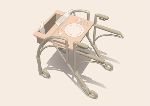 Homie ist ein indoor-Rollator, der gehbeeinträchtigte Menschen im Haushalt unterstützt. Durch sein modernes Design erinnert er mehr an einen Servierwagen und baut so Scham und Stigmatisierung ab, da er nicht sofort als Medizinprodukt erkannt wird.