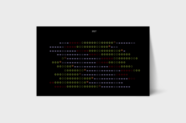 Der Schwerpunkt der Kurse Programmiertes Entwerfen 2 und Programmiersprachen 2 lag auf der Entwicklung eines Kalenders, der vollständig auf Zahlen, Wörter und Symbole verzichtet. Informationen sollten stattdessen ausschließlich über Form und Farbe vermittelt werden. Der Entwurfsprozess begann mit einer statischen Gestaltung und wurde im weiteren Verlauf zu einer interaktiven Anwendung weiterentwickelt.