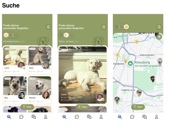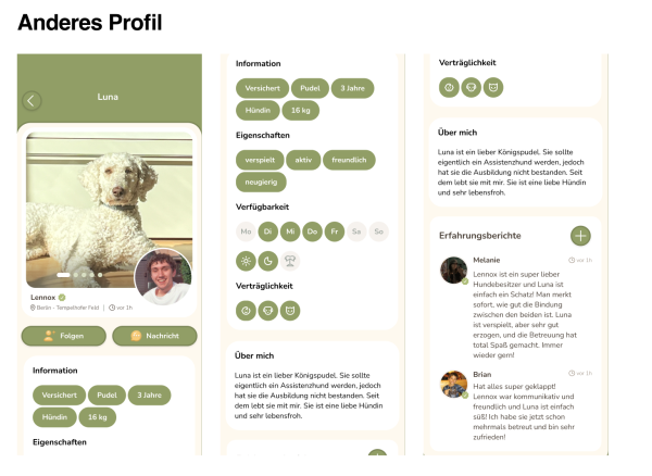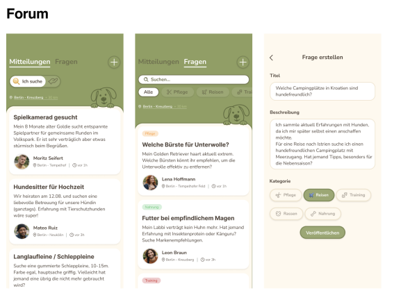 Das Projekt widmet sich der Überarbeitung der App Hundelieb, einer community-basierten Plattform. Im Zentrum steht das Konzept des „Dog Sharings“, bei dem die gegenseitige Hilfe aus Liebe zum Tier im Vordergrund steht.