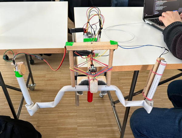 Im Kurs „Interface I“ bestand die Aufgabe darin, einen Controller für ein ferngesteuertes Fahrzeug zu gestalten, das neben den üblichen Richtungsbewegungen zusätzlich mit einem Greifarm ausgestattet ist. Dabei wurde von Beginn an besonderer Wert auf die Nützlichkeit und intuitive Bedienbarkeit des Interfaces gelegt. Ziel war es, am Ende des Kurses mithilfe des Controllers und des Fahrzeugs eine Flasche mit dem Greifarm aufzunehmen, diese durch einen Hindernisparcours zu transportieren und sicher an einem Zielort abzustellen.