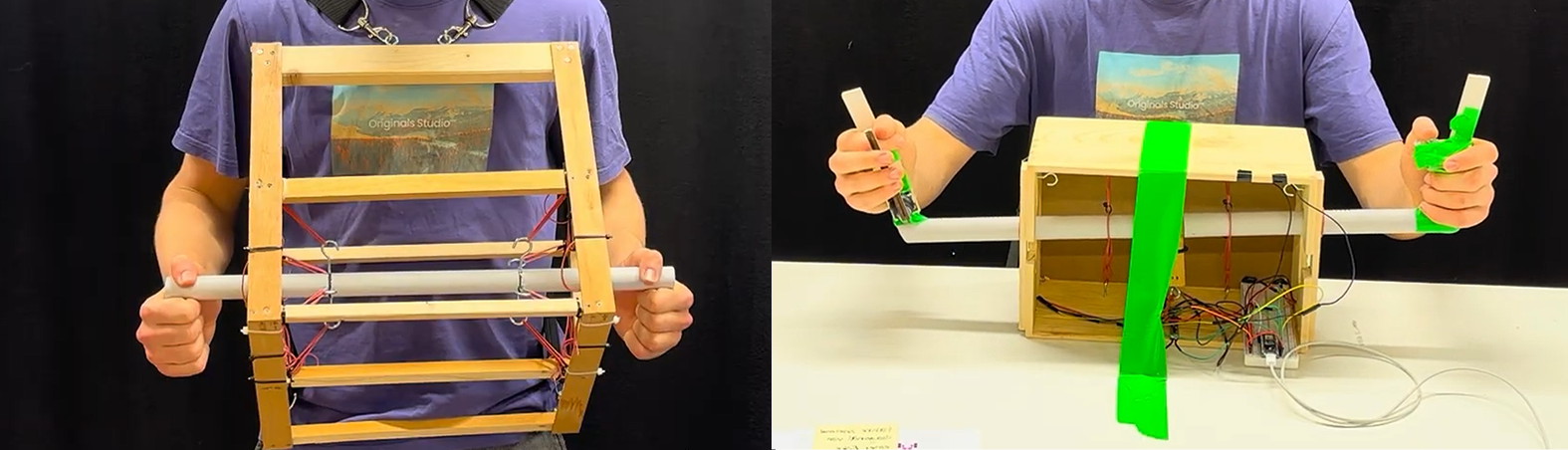 Beim zweiten Prototypen kamen Stretch-Sensoren zum Einsatz. Diese erwiesen sich jedoch als ungeeignet für präzise Steuerung, da sie nur einen sehr kleinen nutzbaren Wertebereich hatten und ihre Messwerte durch Dehnung und Temperatur drifteten. Sie funktionierten eher als binäre Sensoren als für kontinuierliche Eingaben.