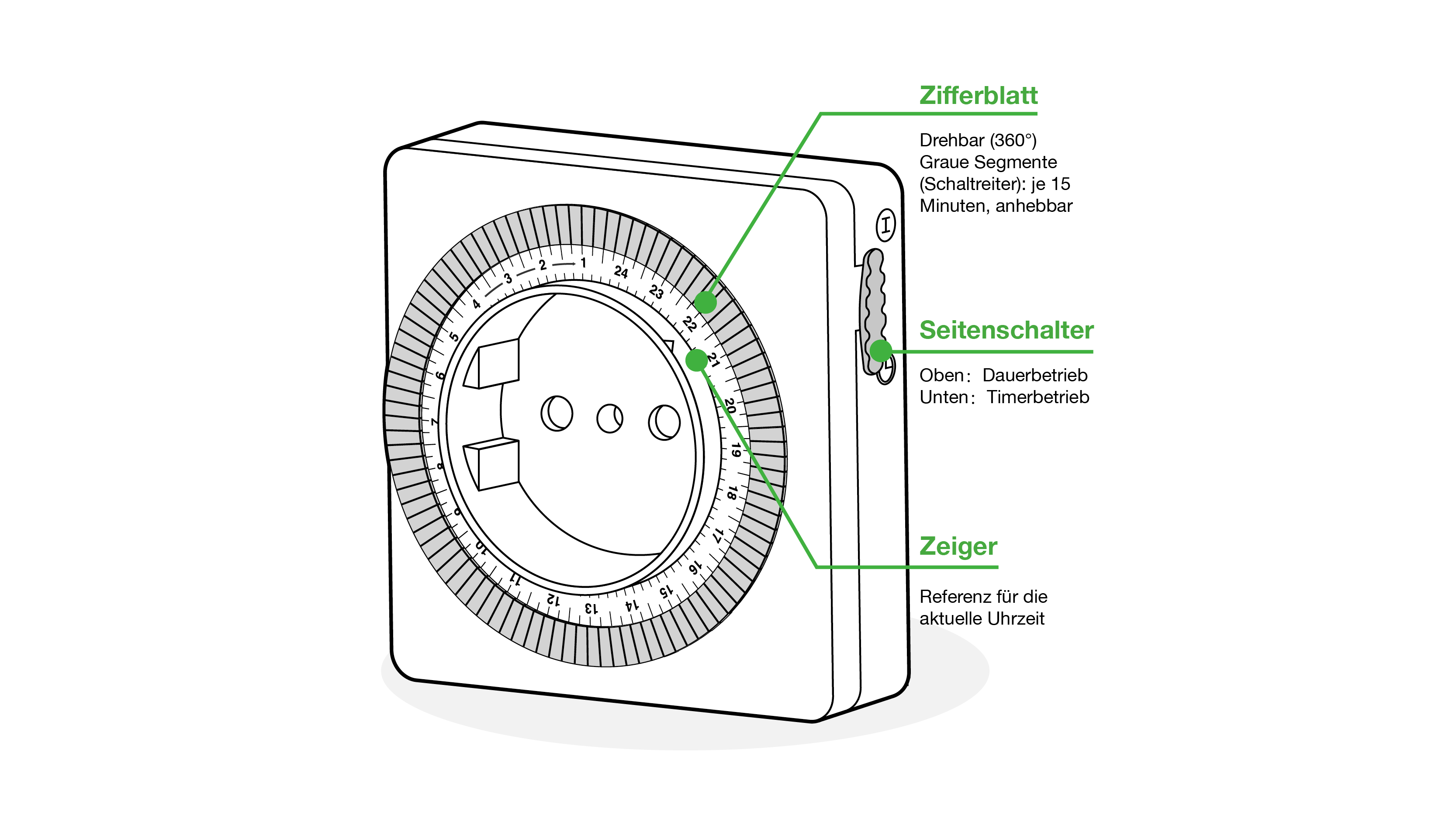Untersucht wurde die Bedienung einer mechanischen Zeitschaltuhr bei der erstmaligen Verwendung.Das Ziel der Nutzer:innen bestand darin, die mechanischen Zeitschaltuhr auf den Zeitraum 14:15–15:00 einzustellen, um ein Handy aufzuladen.