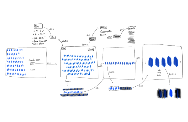 Der Kalender visualisiert das Jahr allein durch Farbe und Form. Grundlage der Gestaltung sind die Parameter Temperatur und Sonnenintensität, die beide schnell und intuitiv erfassbar sind.