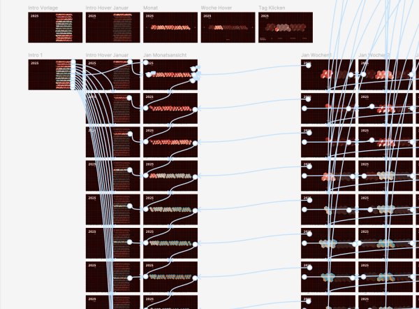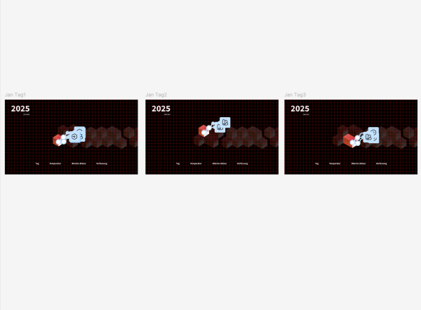 Auf Grundlage der gestalterischen und technischen Inhalte aus dem ersten Semester entwickelte ich ein klares Konzept. Dieses wurde im Kurs Programmiersprachen 2 als interaktiver, digitaler Prototyp umgesetzt. Entstanden ist ein reduzierter und spielerischer Kalender, der Zeit auf eine neue Weise erlebbar macht.
