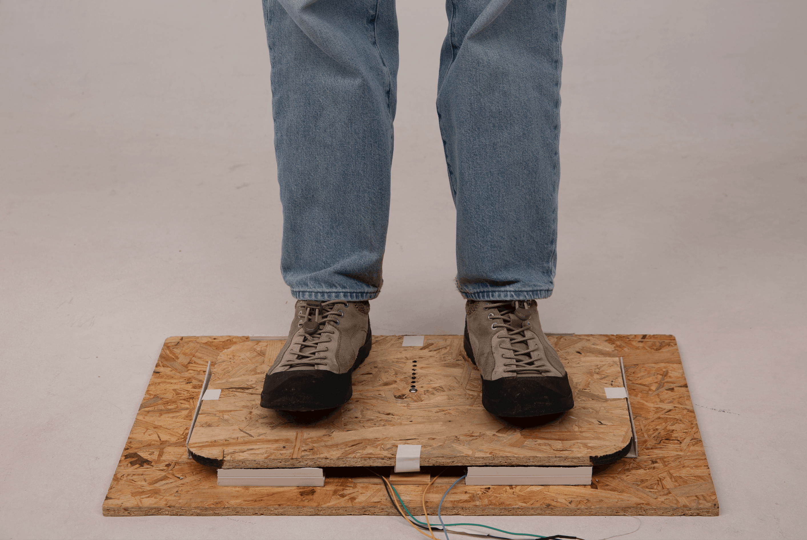 Technisch wird die Neigung nicht über Sensoren gemessen, sondern über mechanische Buttons unter der Plattform. Sobald Gewicht in eine Richtung verlagert wird, drückt die Plattform auf einen Button, der das jeweilige Bewegungssignal auslöst. Eine definierte Nullposition sorgt dafür, dass der Roboter stehen bleibt, wenn kein Druck ausgeübt wird.