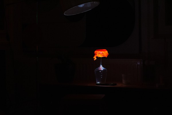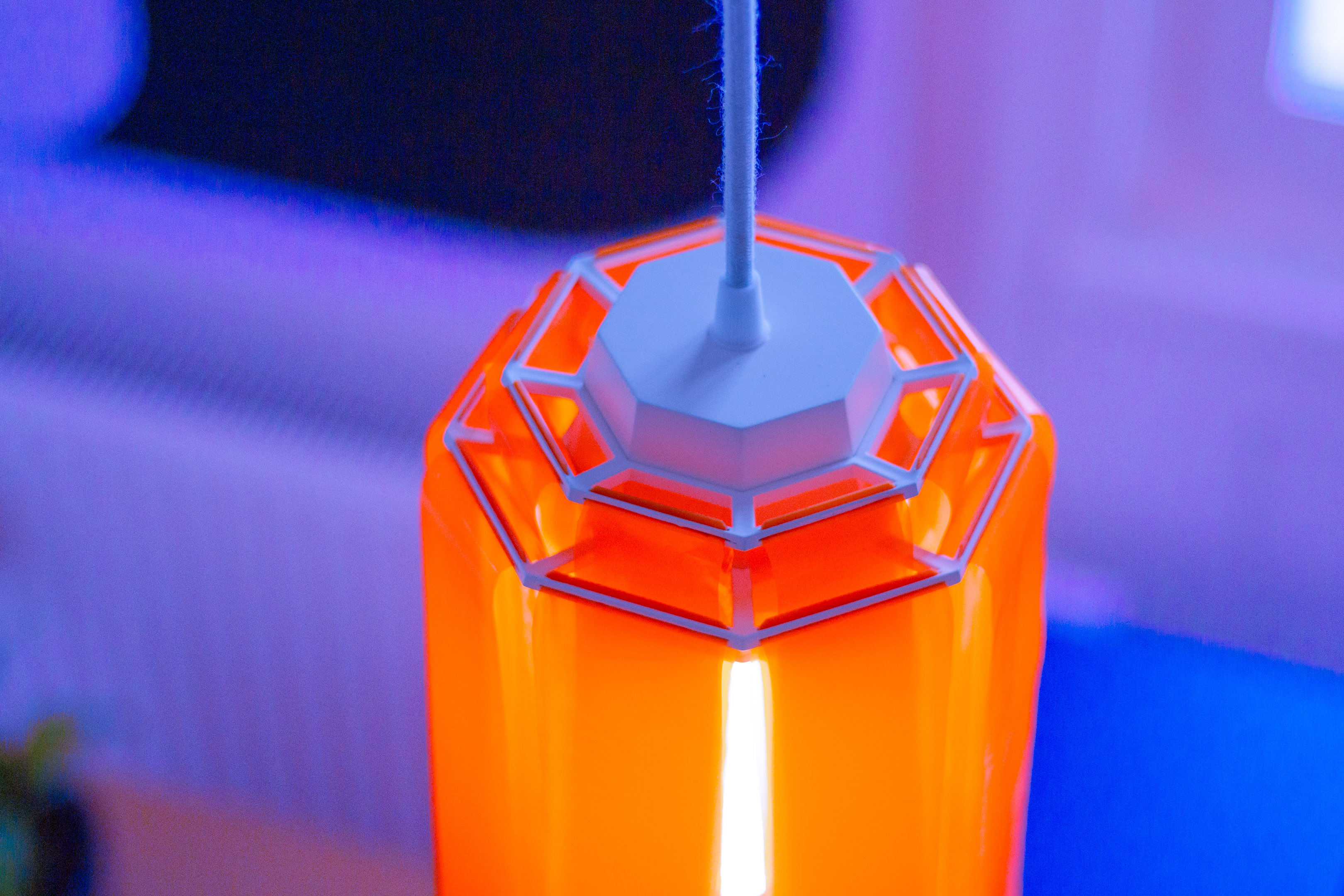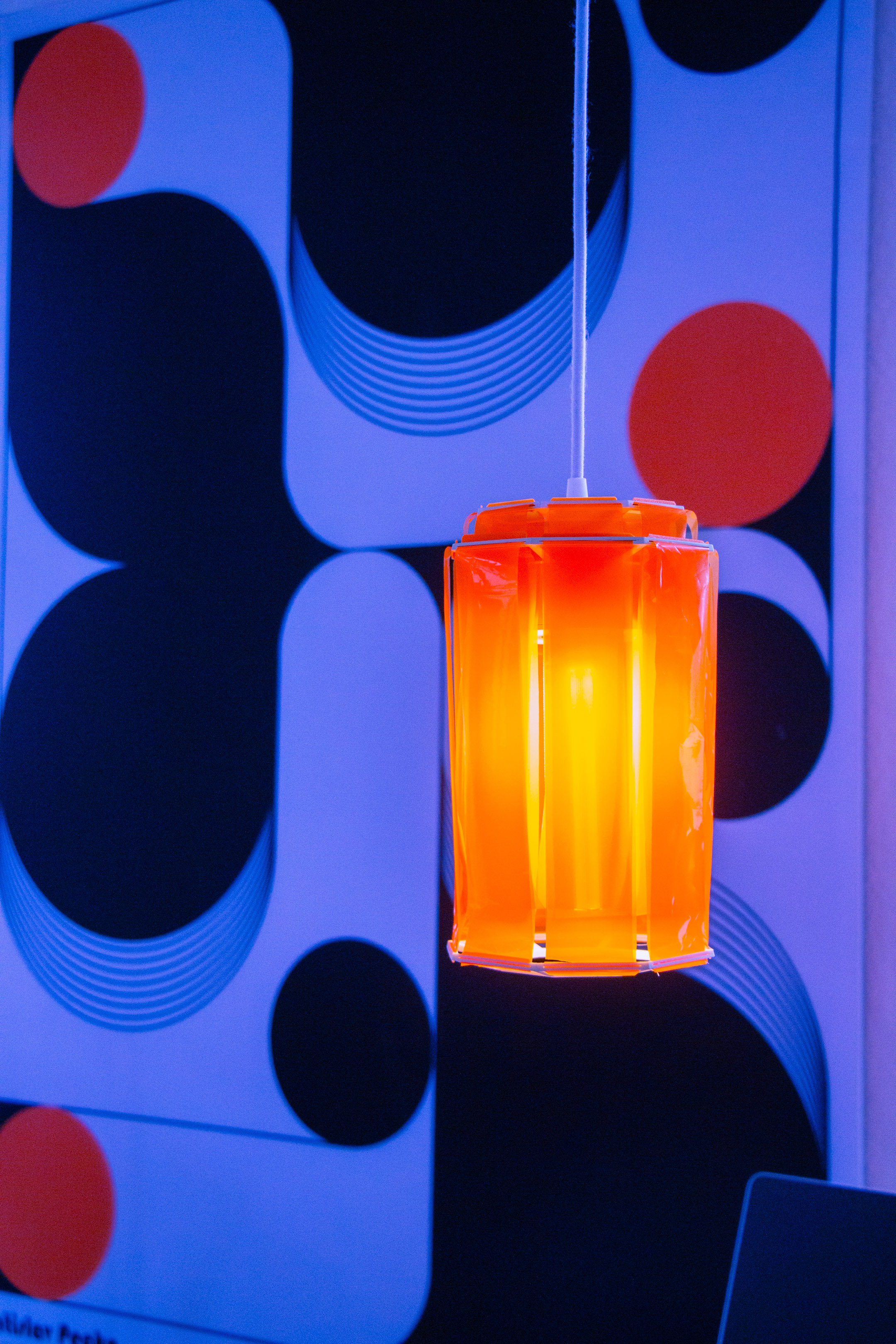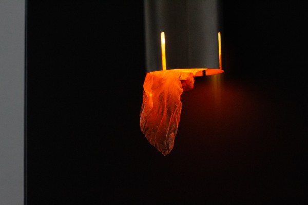 a luminaire was developed in which the light makes the material visible. Cut into strips, the foil hangs down and creates