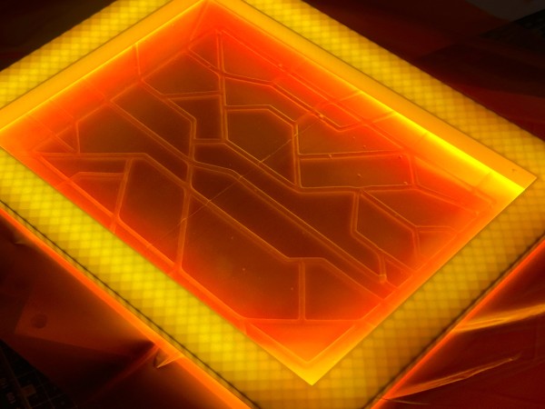 Agar agar appeared promising because it is bio-based, can be poured into sheets and can create a high-tech appearance through its transparency and surface effects. Working with the material proved challenging as results were difficult to control and rarely reproducible. Ultimately, a translucent agar agar film with a technical looking structure turned out