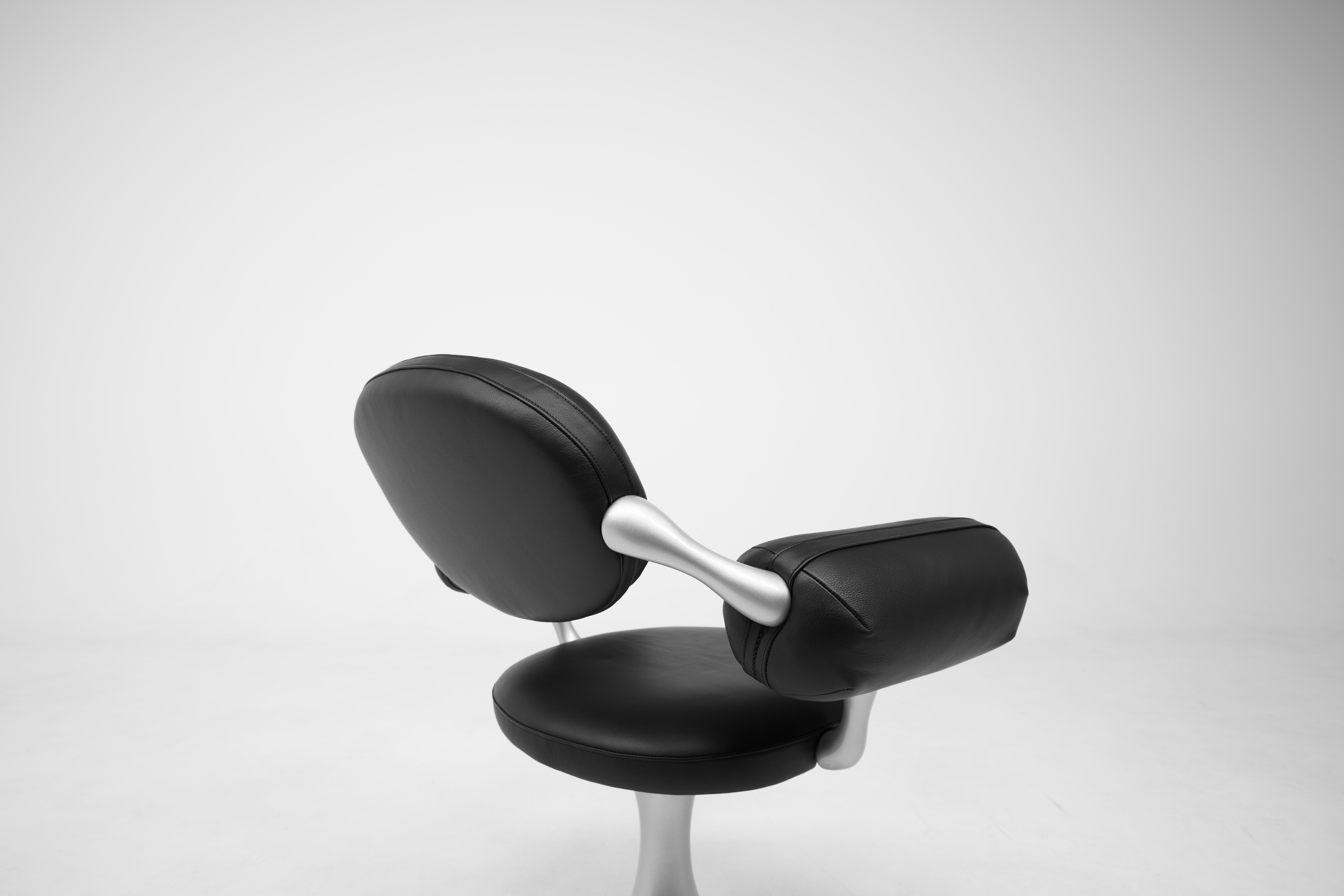 Der M31, benannt nach der Andromedagalaxie, versteht sich als skulpturales Objekt im Raum. Die markanten Verbindungselemente halten die Polster sichtbar zusammen und fügen alle Teile zu einem geschlossenen System. So entsteht ein eigenständiges Statement-Piece, das weniger als Alltagsstuhl gedacht ist, als vielmehr ein skulpturales Objekt für den Interior-Bereich.