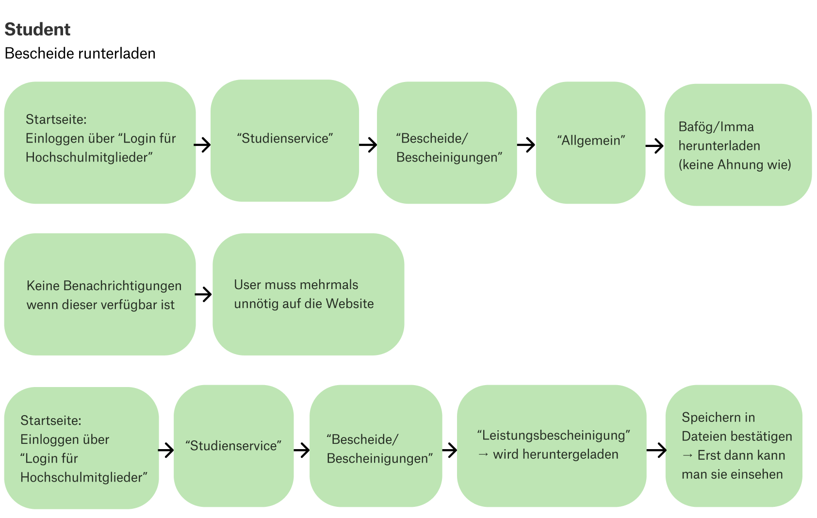 Zusätzlich führten wir noch Usertests an diversen Student*innen durch. Diese durften sich als Beispiel für einen Usertest ihre aktuelle Immatrikulationsbescheinigung runterladen.