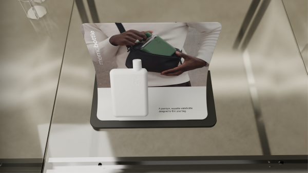 Ein Konzept zur Aufhebung der Diskrepanz zwischen Online-Marketing und physischer Verkaufsfläche. Entwickelt für eine australische Marke, die sich auf die Herstellung flacher Wasserflaschen spezialisiert hat, um sicherzustellen, dass stets ausreichend Platz vorhanden ist, auch wenn Wasser mitzunehmen werden soll.