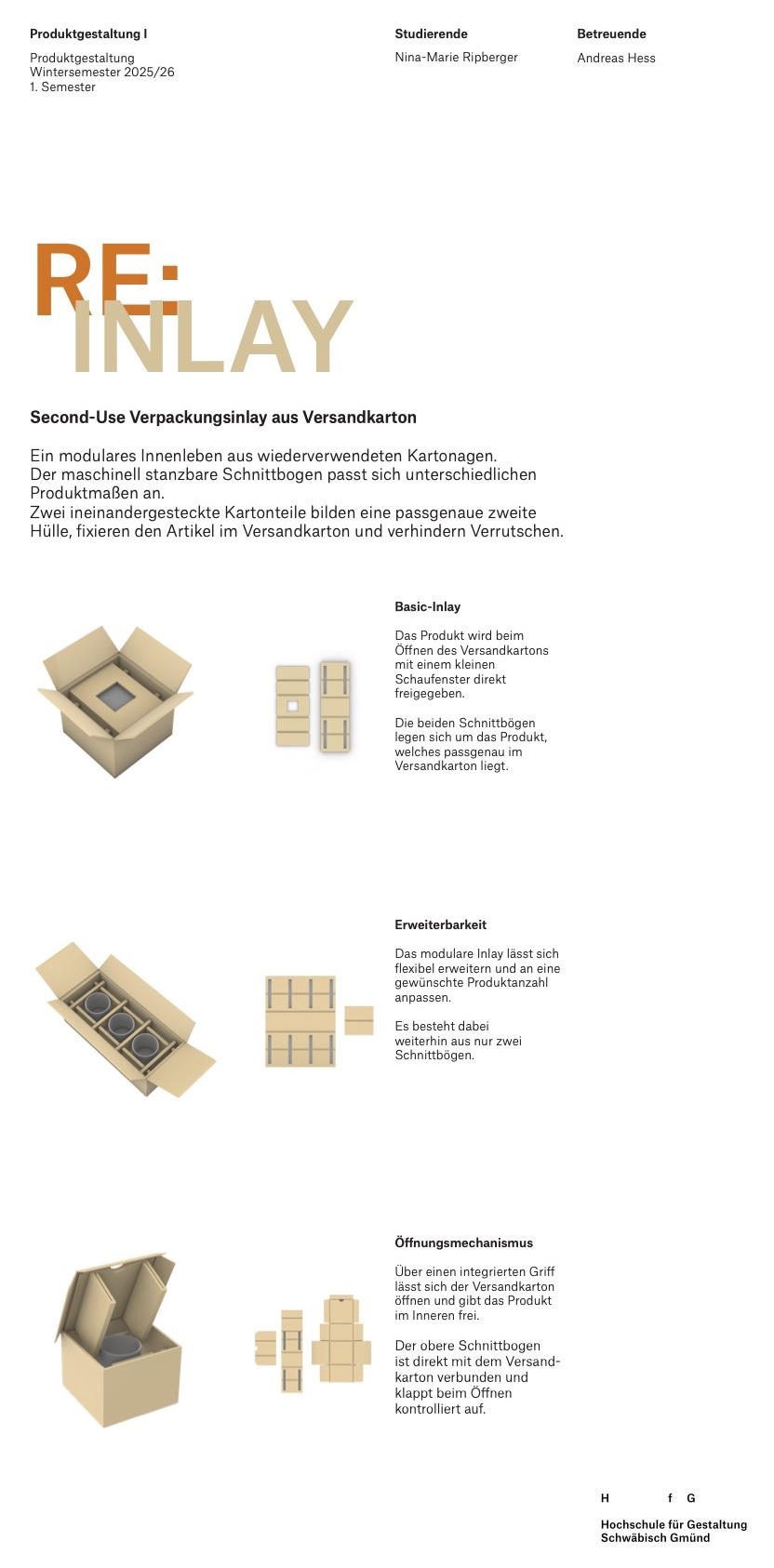 Inhalt des Kurses Produktgestaltung 1B Bachelor of Arts Produktgestaltung Semesterjahr 1. Semester Betreuung Andreas Hess, Ivo Geissner RE:INLAY 0 Studierende Nina Ripberger Betreuung Andreas Hess, Ivo Geissner Tags Grundlagen Produktgestaltung