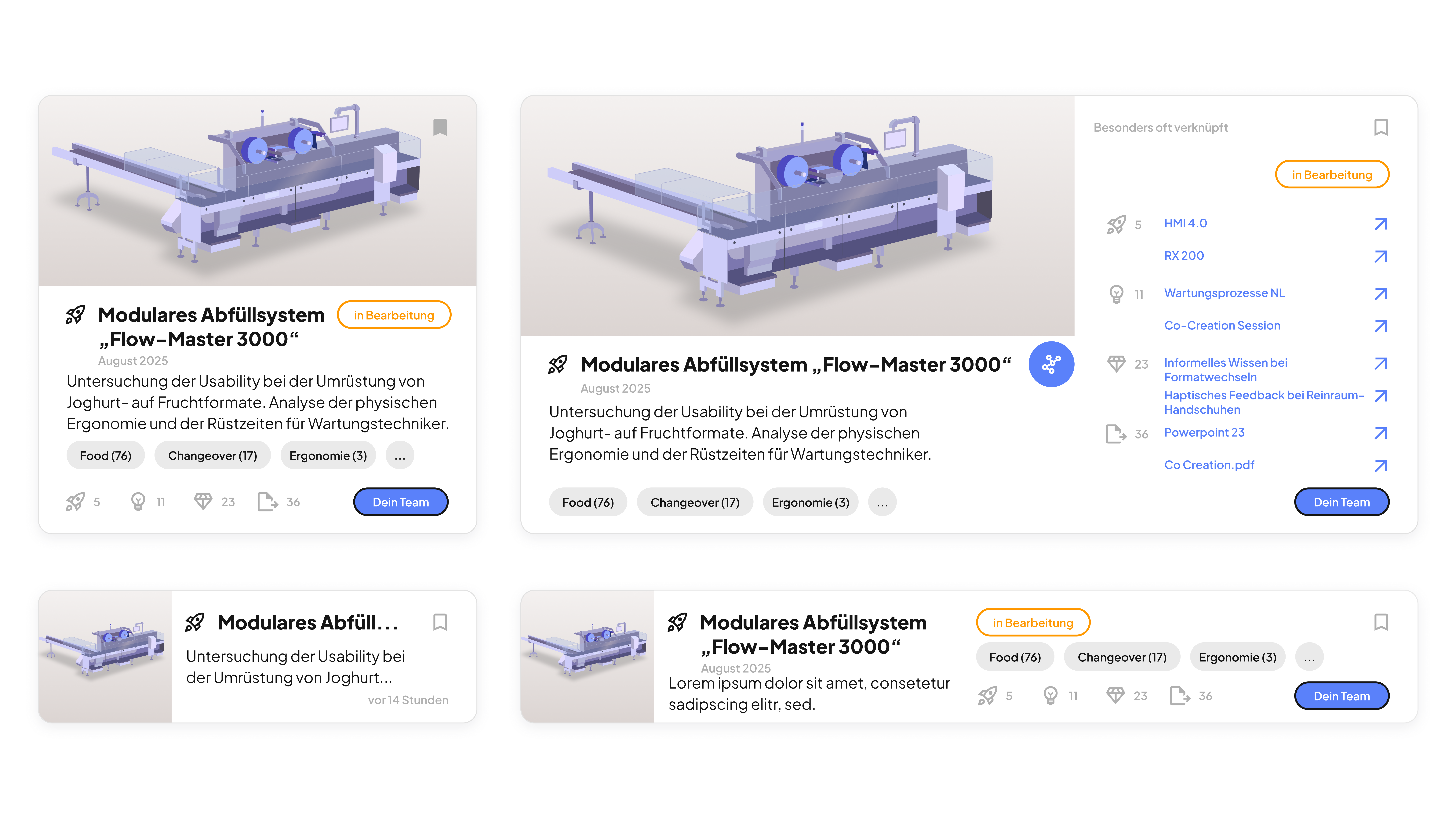 Modulares System ProjektkartenProjekt-, Collections- und Insightskarten