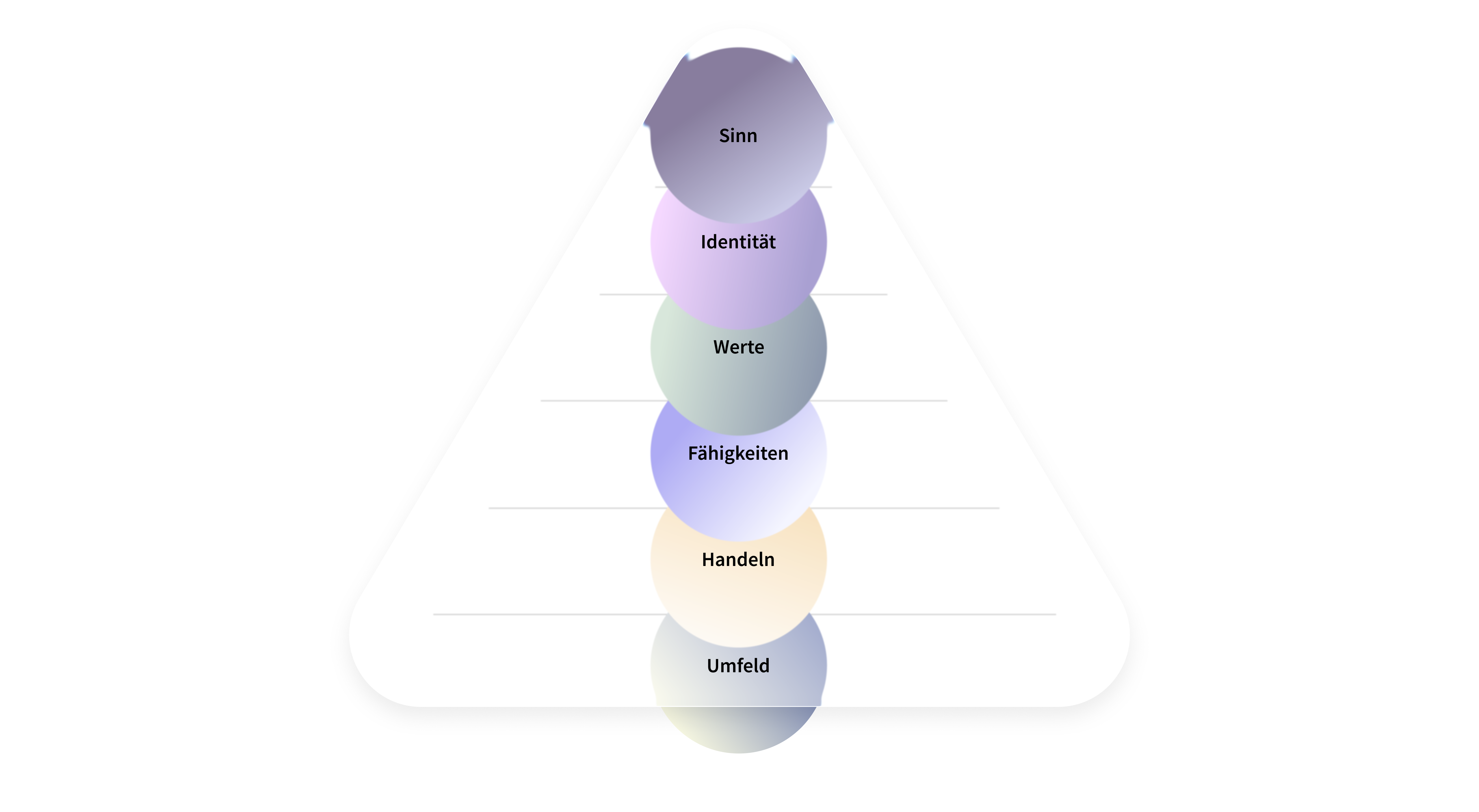 Unsere Reflexion basiert auf der Dilts-Pyramide – einem etablierten Modell aus dem Coaching. Sie gibt dem Prozess eine klare Struktur und sorgt dafür, dass ein Ziel nicht nur oberflächlich betrachtet wird.