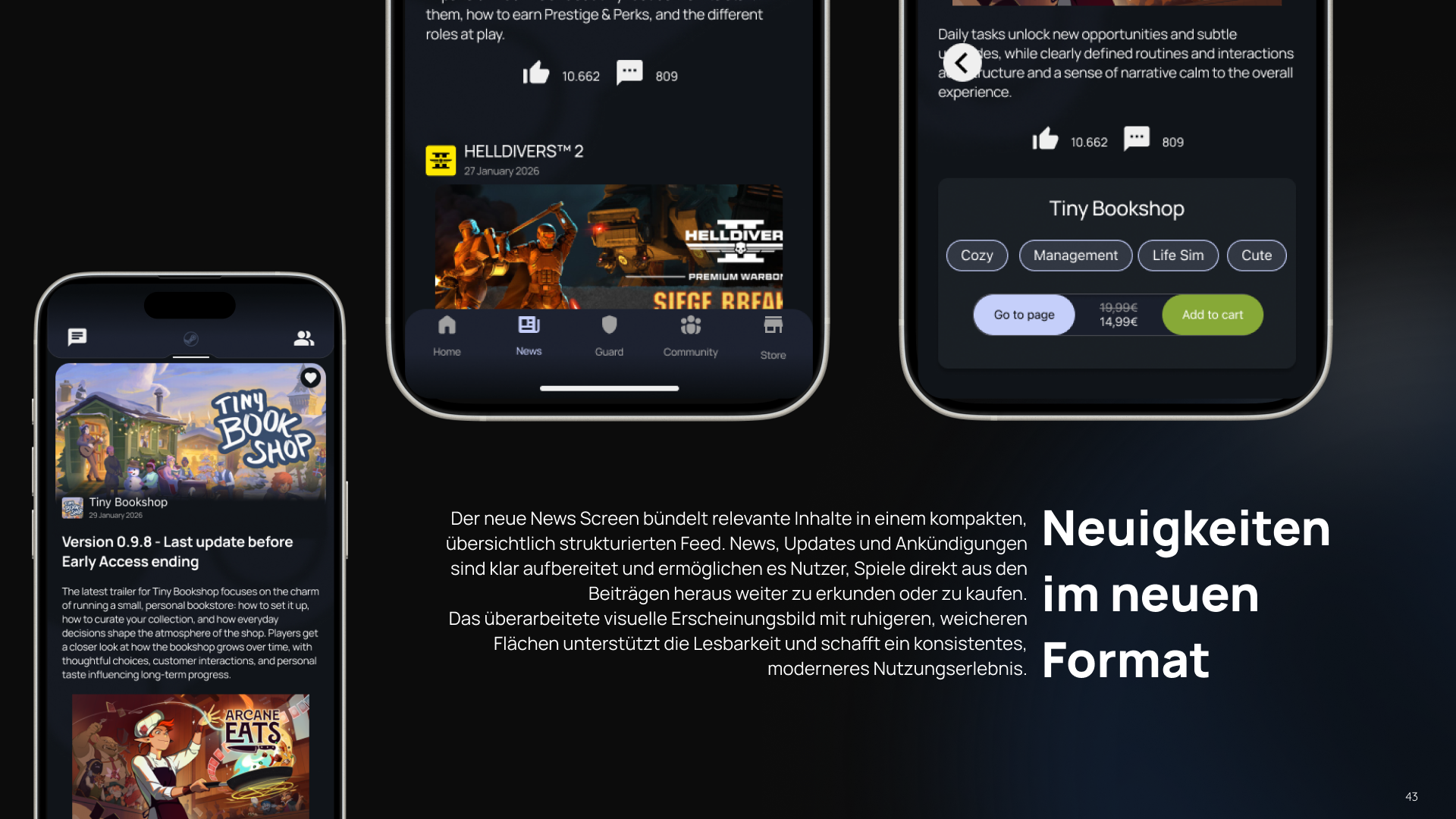 Steam ist die größte Plattform für PC-Gaming und vereint Spielekauf, Community und Services in einem umfangreichen Ökosystem. Die Analyse der bestehenden mobilen Steam-App zeigte jedoch eine hohe funktionale Überladung, unklare Strukturen und ein wenig eigenständiges App-Erlebnis.