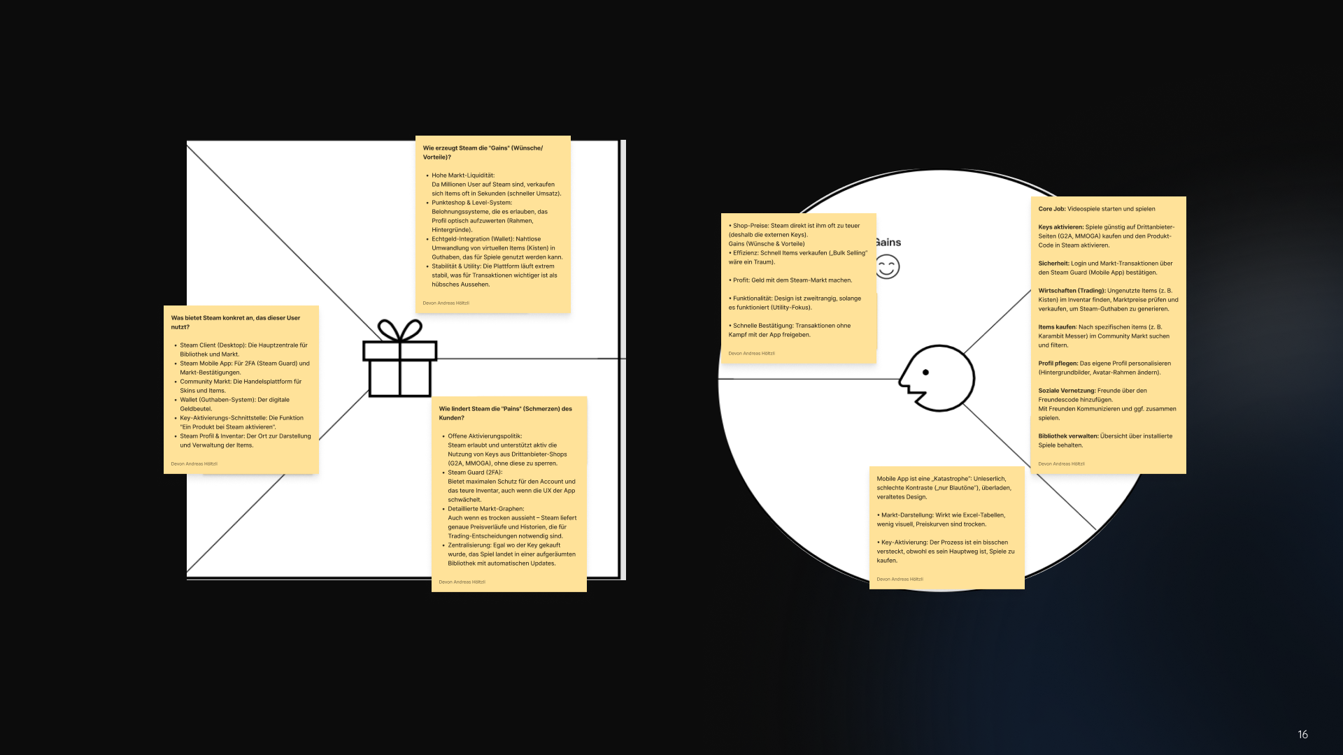 Framing gesammelter Erkenntnisse, beispielsweise in Form von Personas, Competitor Maps oder Jobs to be Done.