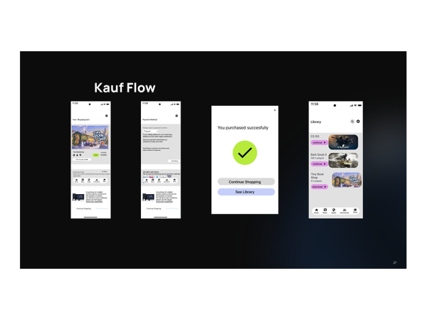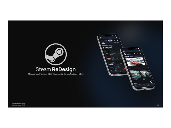 Dies bildete die Grundlage für unser Redesign im Modul Application Design. „Unser Ziel war es nicht, Steam zu kopieren, sondern darauf aufzubauen und zu zeigen, wie sich dasselbe Ökosystem heute moderner, klarer und fokussierter anfühlen kann.”