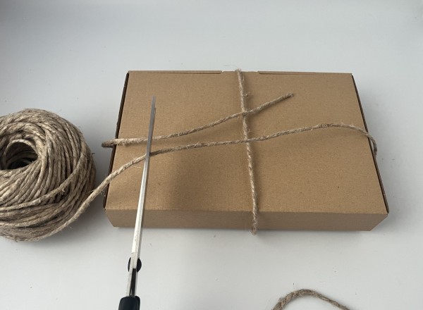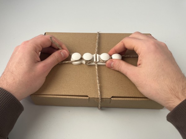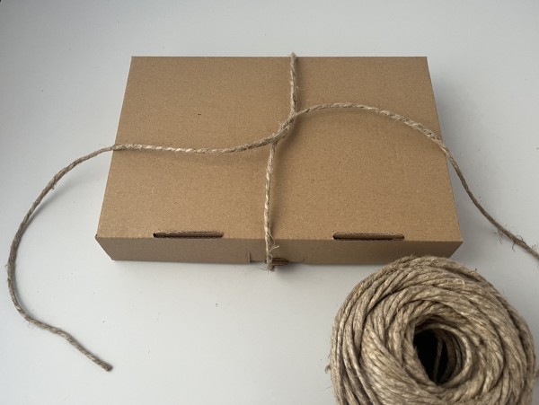Einfach die Schnur um das Paket legen, unten überkreuzen und beide Enden oben in Form einer Acht um die Pilze von StriX wickeln.