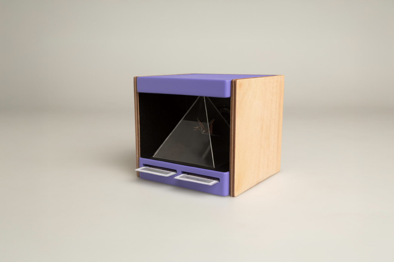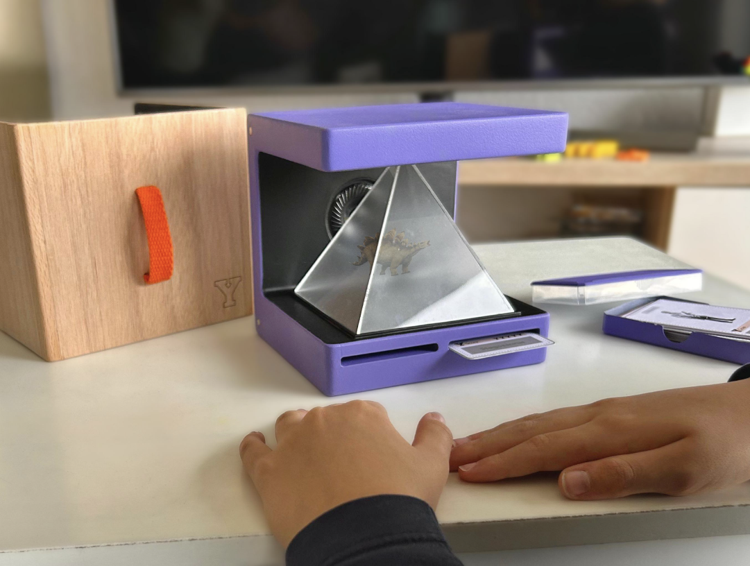 Once the first card is inserted, a hologram appears and an initial story begins. As soon as both cards are in place, they combine to form a new hologram and an overarching narrative. Different card pairings create unique visuals and stories every time.
